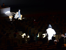 会場を浮気調査の現場に見立ててのミニ劇場。